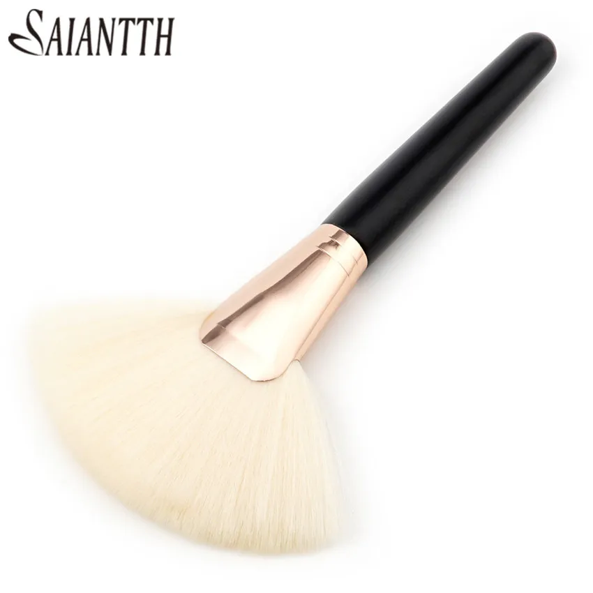 Limited Price for SAIANTTH 1 piece large fan makeup brushes black wood white goat hair make up tool Powder Concealer