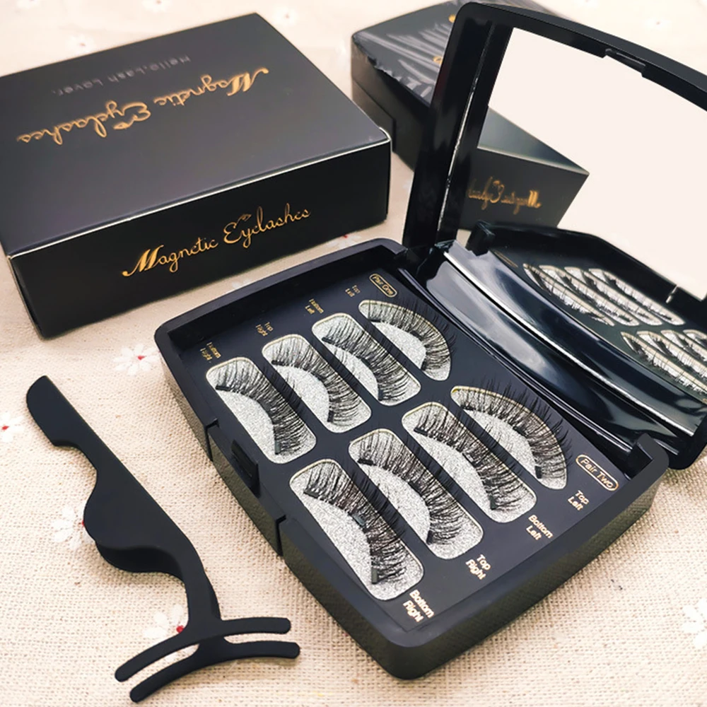 Refurbished Chance for 3D Magnetic Eyelashes Natural Faux Mink Strip Lashes 3 Magnets False Eyelashes With Tweezers Fake L